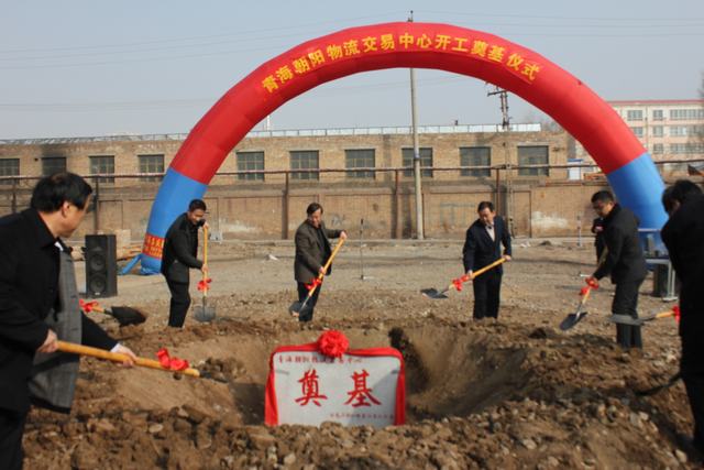 2014年2月25日10時16分,青海朝陽物流交易中心開工奠基儀式在朝陽物流園區項目建設現場如期舉行。奠基儀式由青海朝陽物流有限公司工會主席漆海寧主持。青海省物產集團總公司總經理王玉輝、投資經營部部長劉延虎,青海朝陽物流開發投資有限公司總經理王俊杰、副總經理喇軍民以及青海朝陽物流有限公司副總經理史巖、青島沿海建筑設計有限公司副總經理侯林森、蘭州華鐵工程監理咨詢有限公司西寧分公司總理孔祥海、甘肅省建筑基礎工程公司總經理任建成參加了奠基儀式。