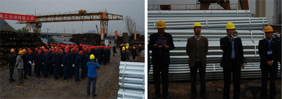 為落實集團總公司《2014年安全生產(chǎn)工作要點》,豐富物產(chǎn)配送公司基層班組建設(shè),促進一線職工綜合技能水平提升,以《吊裝作業(yè)規(guī)范手勢》為標(biāo)準(zhǔn),檢驗公司一線司吊作業(yè)人員執(zhí)行國家規(guī)范手勢、司吊作業(yè)操作規(guī)程的實際效果,保證全年安全控制目標(biāo)的實現(xiàn)。物產(chǎn)配送公司在前期宣傳動員、學(xué)習(xí)培訓(xùn)、實戰(zhàn)演練的基礎(chǔ)上,于2014年5月17日上午,舉行職工勞動技能比武大賽。集團總公司黨委書記白家林、集團黨群工作部部長趙宗青、安全環(huán)保部干事劉軍蒞臨現(xiàn)場指導(dǎo)。