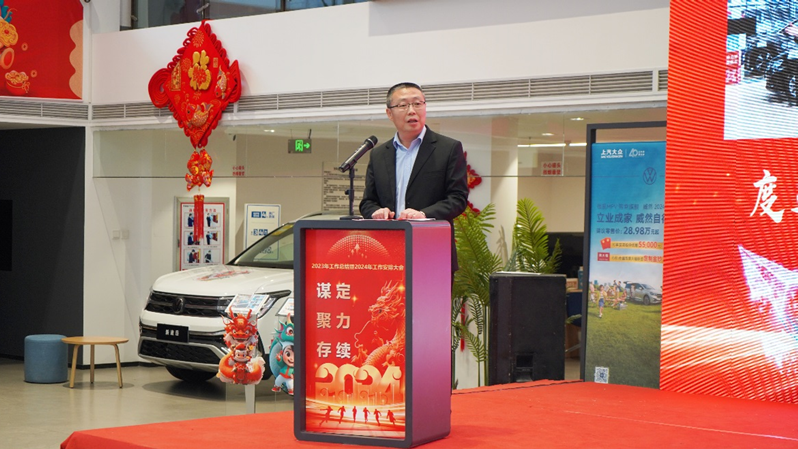 2024年是新中國成立75周年,是向奮斗目標發力攻堅之年,是實現“十四五”規劃目標任務的關鍵一年。為了激勵班子講政治、履好責、守規矩、務實功、抓落實,公司提出了2024年的工作主線,重新梳理思路,完善鏈條,明確抓手,確定目標。為了激發全員,丁勇帶領與會人員再次重溫李強總理答記者問“走遍千山萬水、說盡千言萬語、想盡千方百計、吃盡千辛萬苦”中蘊含的深刻涵意,飽含深情地把“活著,就是偉大勝利”的道理講深講透,并引用飛機廣播安全提示語,以形象、新穎的方式,勉勵全體汽貿干部職工堅信“度過顛簸、安全降落、準時起飛。”只要上下齊心,精誠共進,目標就一定能夠實現。