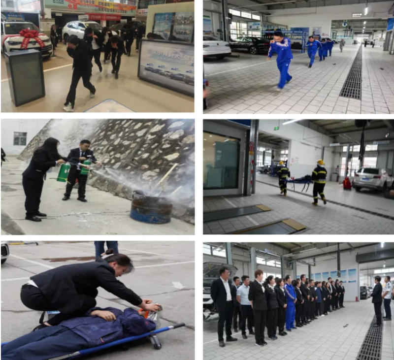 在滅火綜合應急演練環節。隨著一陣急促的警報聲響起,“火災”迅速蔓延。全體干部職工在聽到指令后,迅速到位,在最短的時間內,從辦公室、銷售展廳及售后車間,通過疏散小組人員的口令加手勢,進行了有序的疏散,把現場所有人員,快捷有序的疏散到安全地帶。